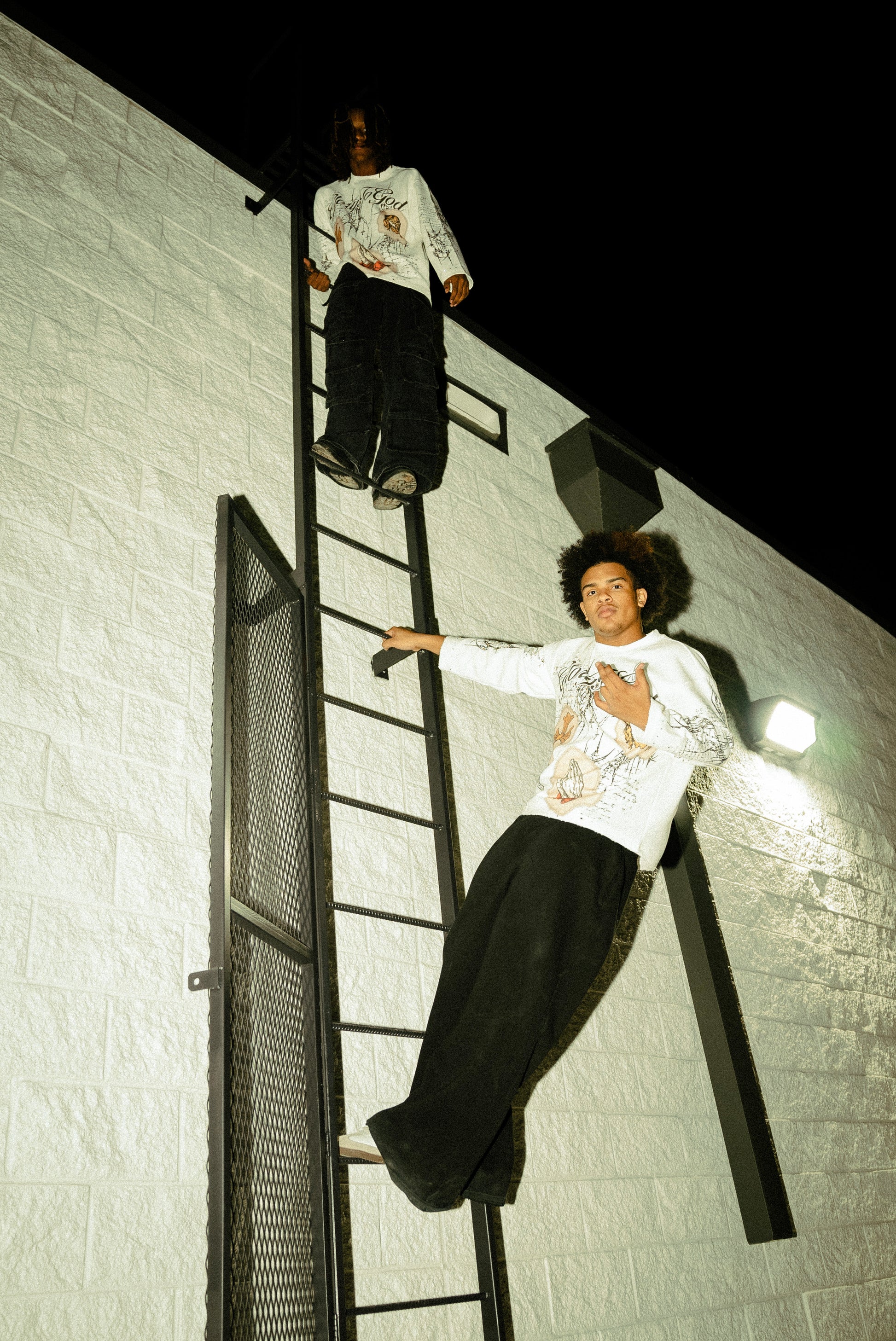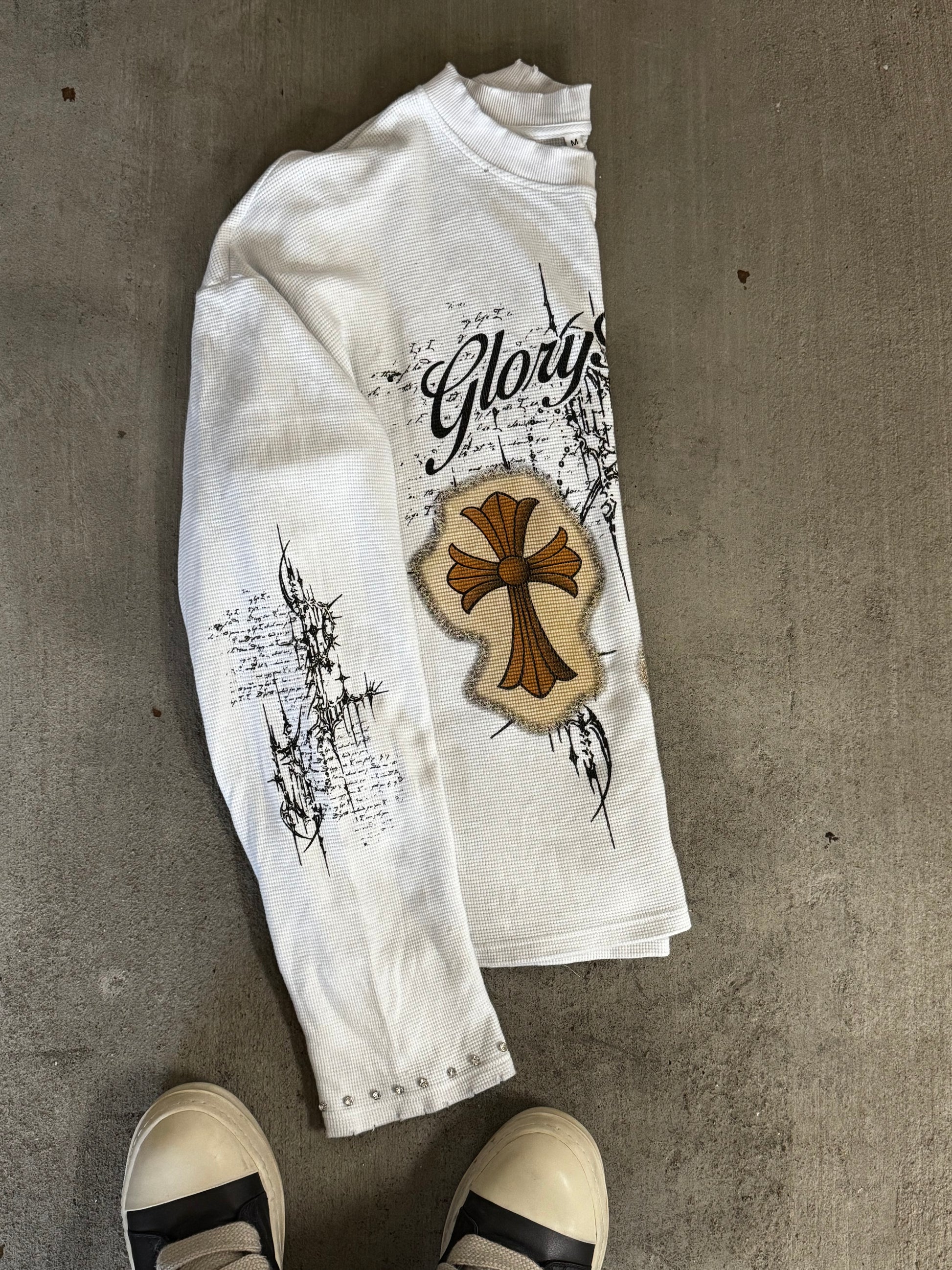 - Distressed collar and cuffs
